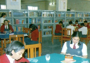 The library offers an open shelf system for the convenience of the teachers and students. The books available in the library cater to the interest of students of various age groups. Every class has a library period. Teachers accompany the students to the library and guide them in selecting books and deriving information. Group discussion, books reviews, quiz etc. are some of the follow up activities taken up in the class.